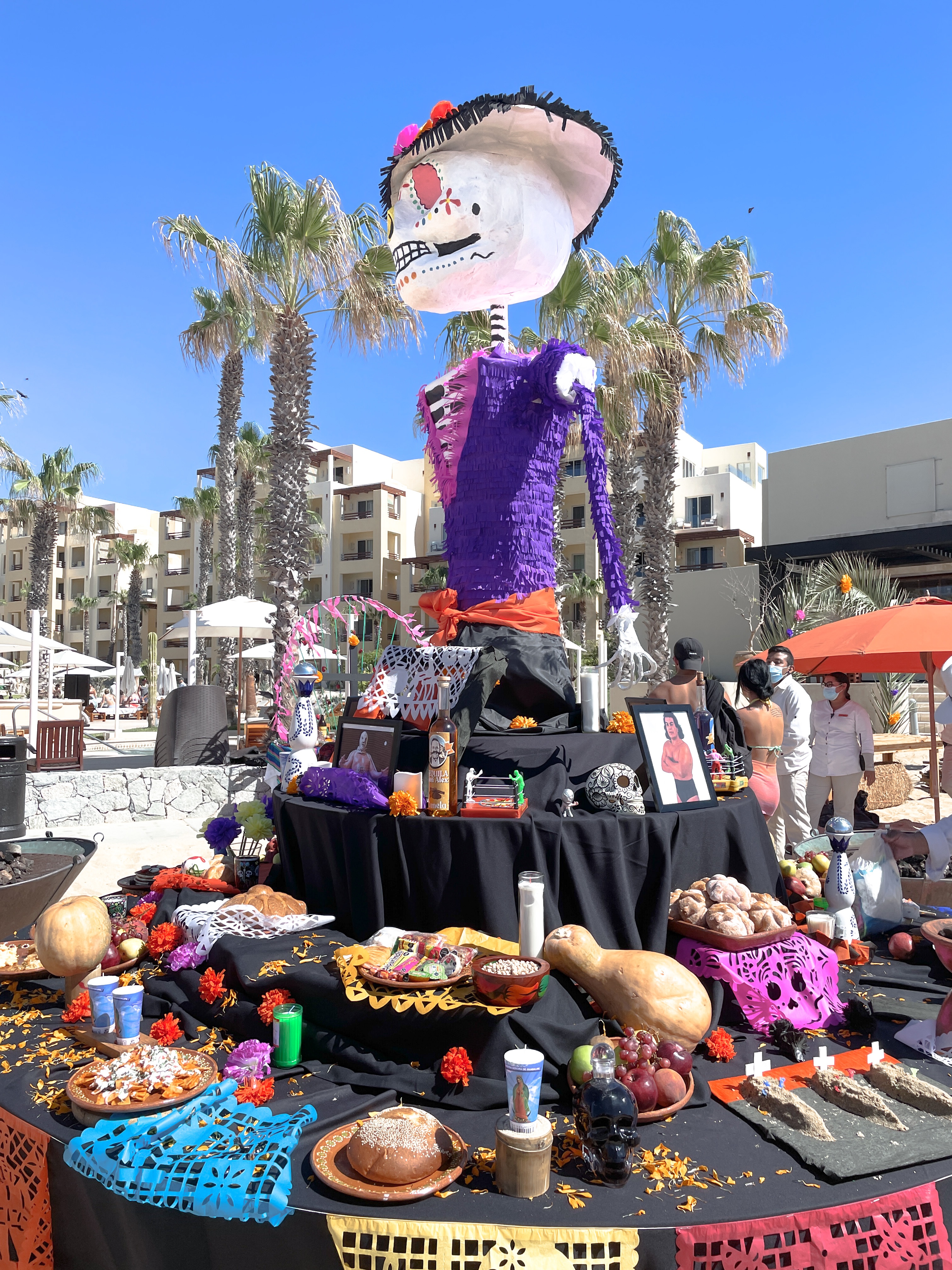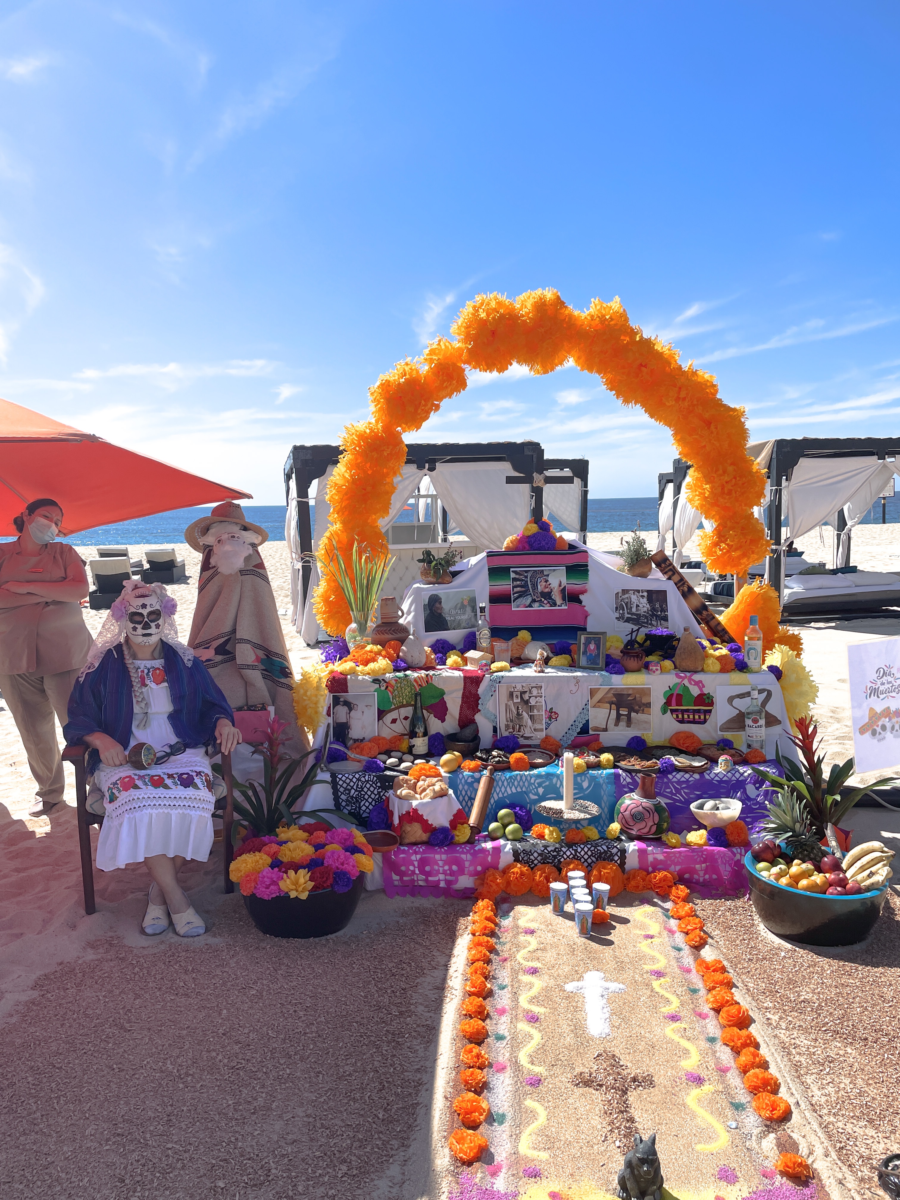 One of the highlights for me was being in Mexico on Día de los Muertos or Day of the Dead. The resort staff created their own unique ofrendas (or altars) to honor loved ones and important cultural figures from the community. I loved walking around and listening to all of their stories and gaining more insight on just what this day means to them. (Fun fact – Craig and I had a Día de los Muertos themed Welcome Party to kick off our wedding weekend – more on that in the coming weeks!)